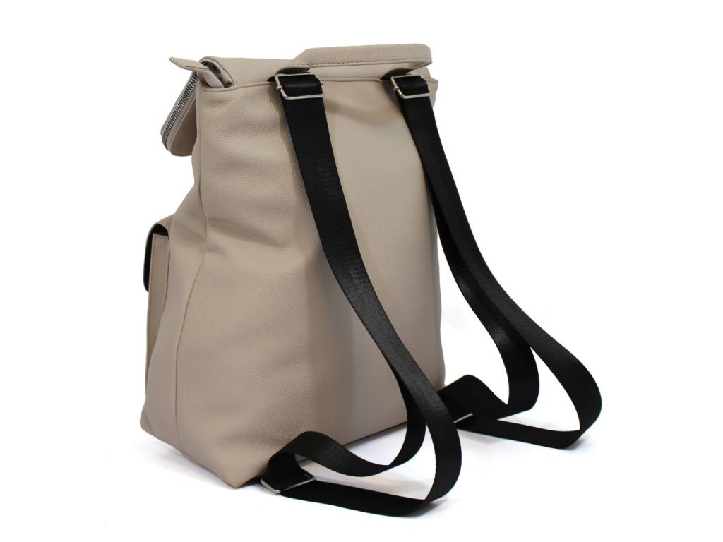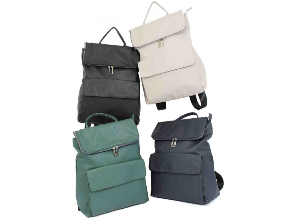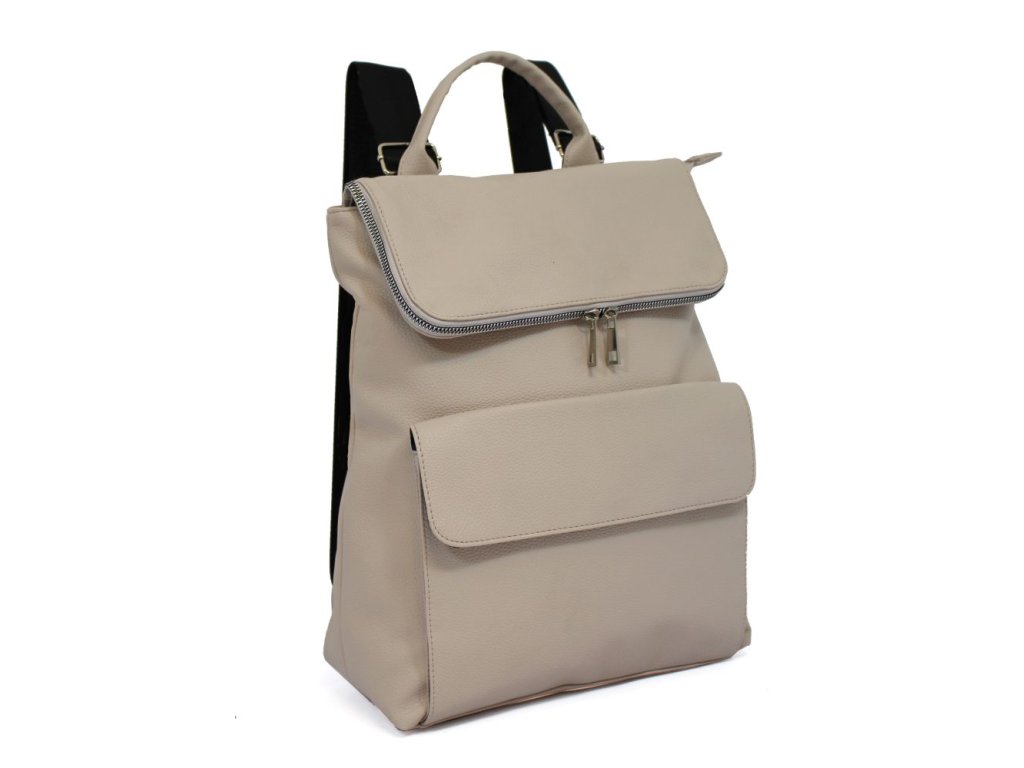 Městský, sportovně elegantní, prostorný batoh je vyrobený z měkké eko kůže s jemnou strukturou. Vnitřní část tvoří podšívka z polyesteru a 3 malé kapsy v podšívce, hlavní prostor je uzavřený zipem a klopou s ozdobnými zipy na magnetku, zvenku je klopová kapsa také na magnetku. Do kabelky se vejde nejen peněženka, mobil, doklady, kapesníčky, ale ještě třeba i silný notes, formát A4, velká láhev na pití a ještě zbyde dost místa. Vhodný na pochůzky městem, menší výlet. Jemné barvy, kterými doladíte nejen jarní outfit.