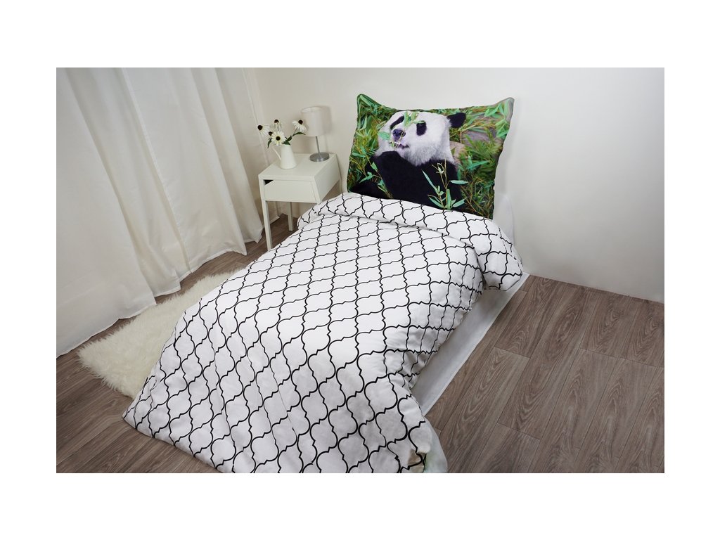 Kvalitní bavlněné povlečení na jednolůžko s přírodním vzorem pandy. Povlečení je vyrobeno ze 100% bavlny. Je velmi příjemné na dotek, spolehlivě vás zahřeje a výborně absorbuje vlhkost, což oceníte především v letních měsících. Vysoká kvalita zpracování zajišťuje stálost barev a rozměru.