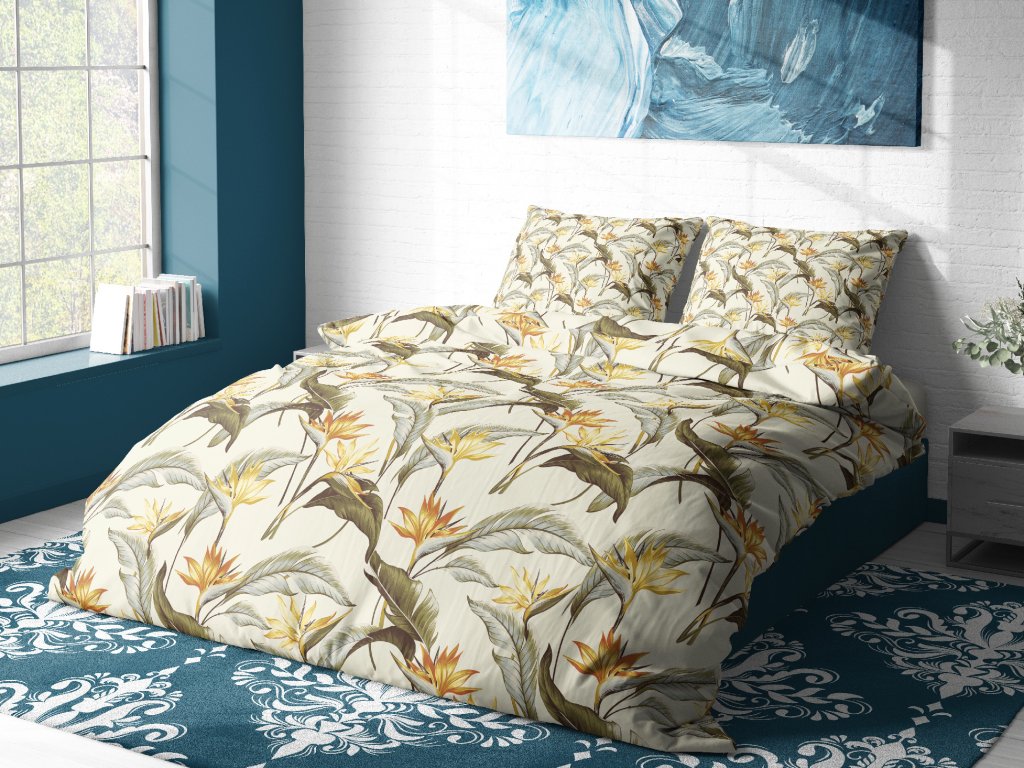Kvalitní bavlněné povlečení na jednolůžko s jemným vzorem exotických květů. Povlečení je vyrobeno ze 100% bavlny. Je velmi příjemné na dotek, spolehlivě vás zahřeje a výborně absorbuje vlhkost, což oceníte především v letních měsících. Vysoká kvalita zpracování zajišťuje stálost barev a rozměru.