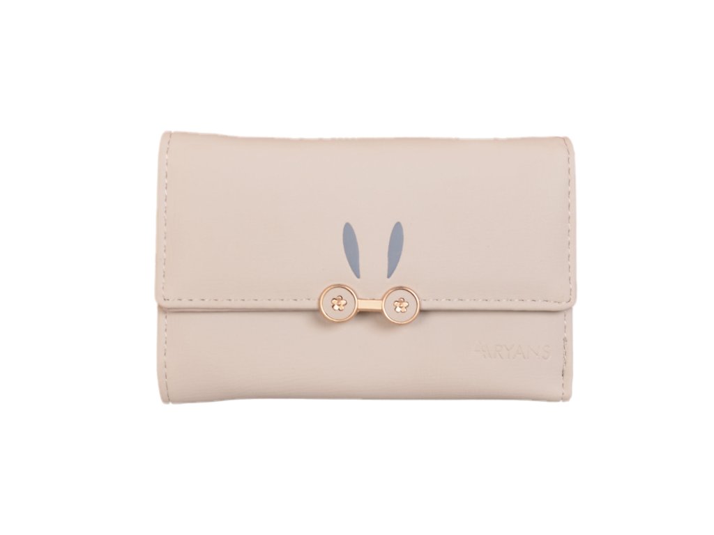 Krásná peněženka s něžnou aplikací v zavírání; v klopě jsou 2 kytičky ve spojených kroužcích, doplněné dvěma raženými a dobarvenými lístky v povrchu peněženky. Zhruba uprostřed pod aplikací je patent na zavírání. Vpravo dole je nenápadný ražený emblém AAryans.