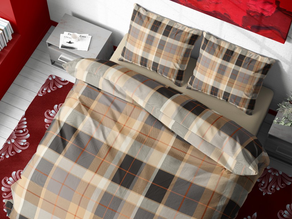 Kvalitní flanelové povlečení na jednolůžko s moderním vzorem hnědo-šedých kostek na hnědém podkladu. Komfortní flanelové povlečení je vyrobeno ze 100% bavlny a díky své příjemné hřejivosti oblíbené především v chladnějších měsících. Zároveň je velmi lehké a příjemné na dotek, spolehlivě vás zahřeje. Vysoká kvalita zpracování zajišťuje stálost barev a rozměru. Standardní velikost povlečení na jednolůžko obsahuje 1x povlak na polštář o velikosti 70x90 cm a 1x povlak na velkou postel o velikosti 140x200 cm. Klasické zapínání na knoflíky.