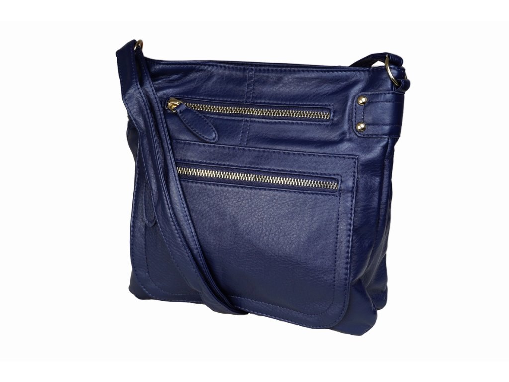 Dámská kabelka crossbody přes rameno je vyrobena z vysoce kvalitní eko kůže. Vnitřní část tvoří podšívka z polyesterové vlny tmavě modré barvy. Tato stylová tmavě modrá kabelka je praktická. Vejde se do ní to nejdůležitější (mobilní telefon, peněženka, klíče) plus nějaké ty drobnosti. Má jeden hlavní úložný prostor se zapínáním na zip. Je vybavená třemi vnitřními kapsami, z nichž jedna je na zip a dvěma vnějšími kapsami se zipem. Zdobí ji zlaté kování, které dodá kabelce osobitý vzhled. Nosí se pohodlně díky nastavitelnému ramennímu popruhu. Tuto kabelku si zamilujete a stane se Vaším každodenním společníkem ve dnech, kdy postačí mít sebou pouze ty nejdůležitější věci. Je vhodná na cesty do práce, do města nebo na výlety. Rozměry tašky jsou 24x25x5 cm.Doplňkové parametry