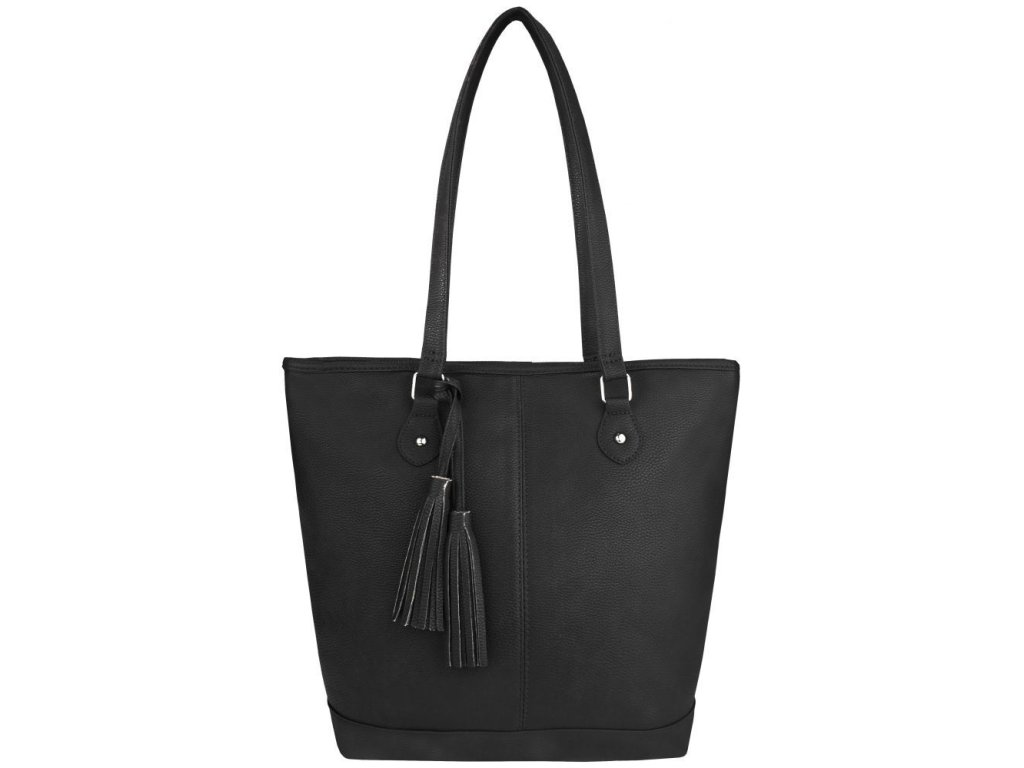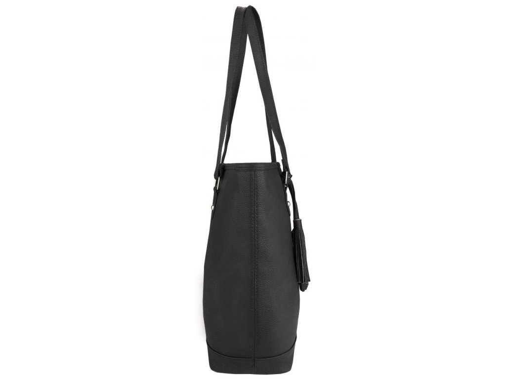 Má jeden hlavní úložný prostor uzavíratelný na zip, vybavený 1 malou uzavíratelnou kapsou. Na přední straně kabelku zdobí efektní švy - příčný uprostřed a podélný u dna a módní střapec. Skvěle se nosí, ucha jsou dostatečně dlouhá.