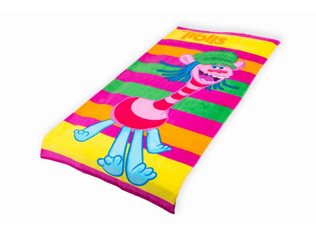 Dětská osuška Trolls je vyrobena ze 100% bavlny. Zahřeje a zároveň výborně absorbuje vlhkost. Tato pestrobarevná osuška s motivem Trollů z oblíbeného kresleného filmu udělá radost vašim dětem nejen v koupelně, ale i venku u bazénu nebo při dovolené na pláži. Jistě vykouzlí úsměv na tvářích vašich dětí. Vaše děti si tuto osušku velmi oblíbí. Je vhodná pro citlivou dětskou pokožku. Skvěle se hodí pro holky i kluky. Balení obsahuje osušku o rozměrech 70x140 cm.Doplňkové parametry