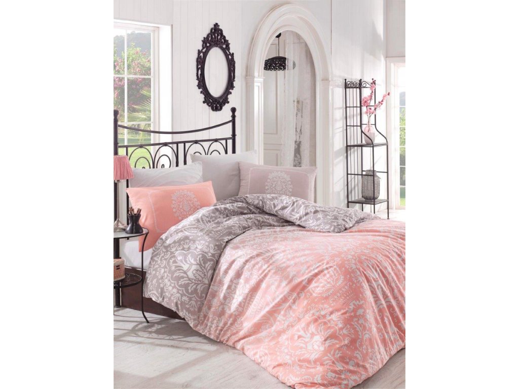Komfortní povlečení z bavlněného saténu v moderním stylu. Elegantní kombinace rostlinných motivů v atraktivní lososovošedobílé barvě, navozující příjemnou atmosféru ke spánku.